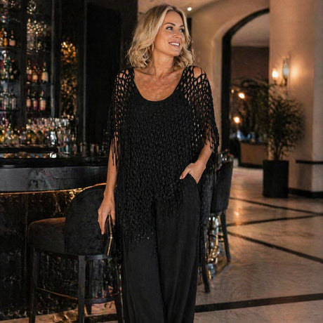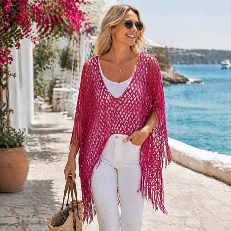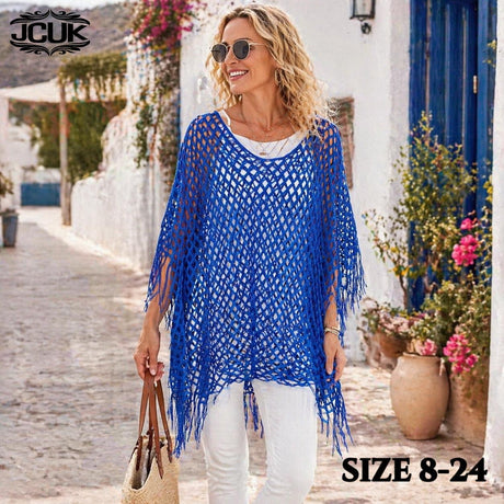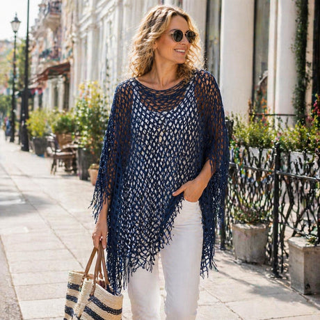 Lightweight Crochet Knit Cover Up Poncho | One Size Fits UK 10–24