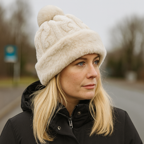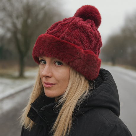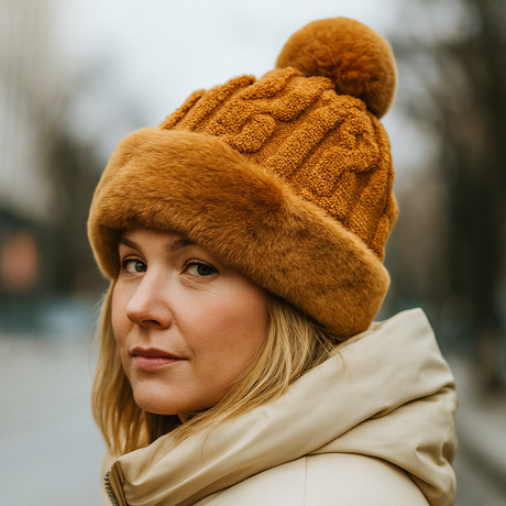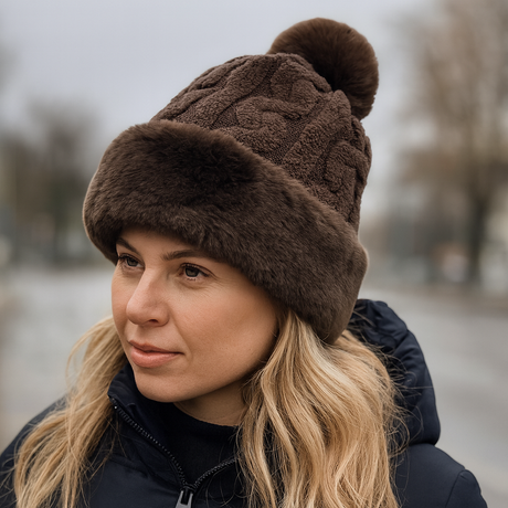 Women's Faux Fur Winter Pom Pom Hat SUPER SOFT SUPER COZY Plush warm lining inside