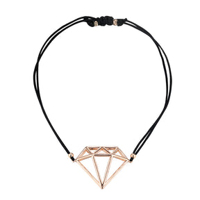 Geometric Diamond Black Cotton Cord Bracelet - Rose Gold