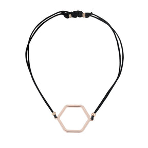 Hexagon Black Cotton Cord Bracelet - Rose Gold