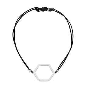 Hexagon Black Cotton Cord Bracelet - Silver - Silver is backordered and will ship as soon as it is back in stock.