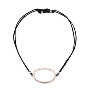 Oval Black Cotton Cord Bracelet - Rose Gold