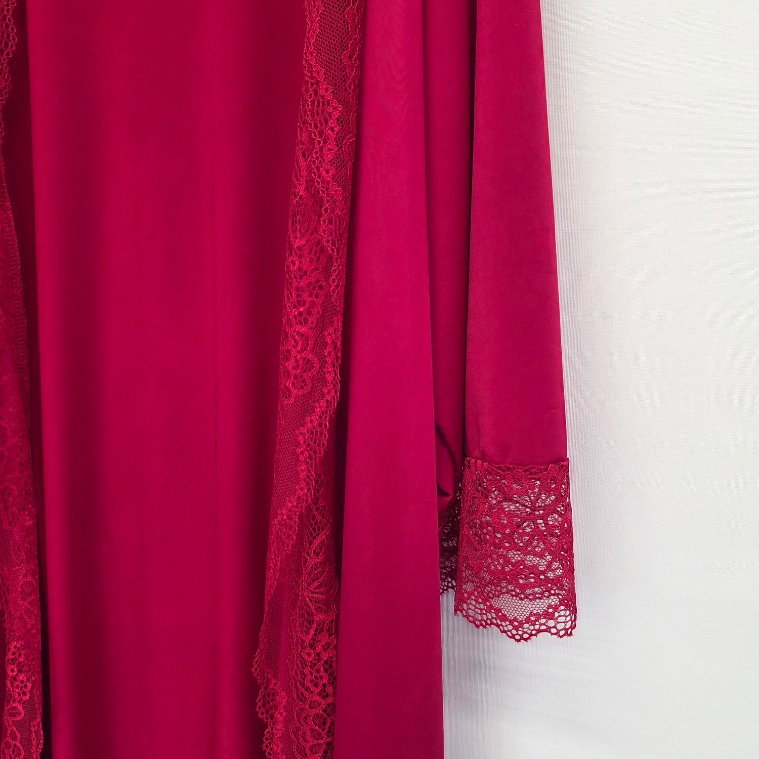 Luxury Silk Feel Lace Trim Lounge Set UK Size 10–24 - Burgundy / S/M(10-16) is backordered and will ship as soon as it is back in stock.