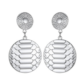 Silver Scale Textured Disc Dangly Earrings YD22831SLR - Silver is backordered and will ship as soon as it is back in stock.