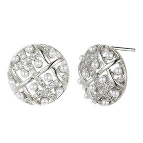 Silvery Hollowed Button Earrings with Pearls & Diamante YX12010SLR
