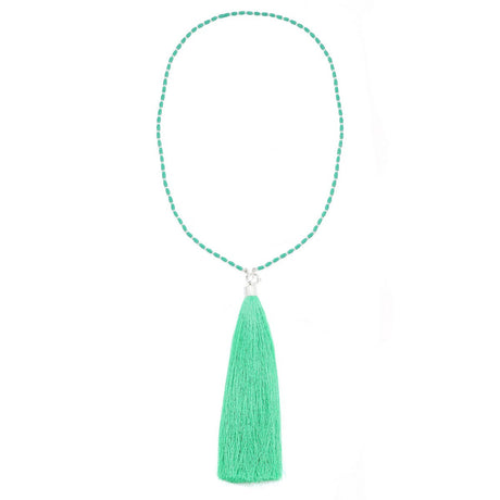 Green Long Tassel End Beaded Necklace YD19081GRN