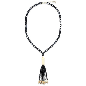 Chain Link Long Necklace with Beaded Tassel - Black YD22063BLK