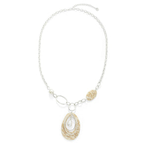 Cream Oval Pendant Chain Necklace YT10012WHT