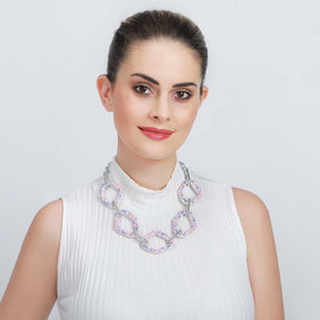 Geometric Mixed Colour Link Statement Necklace YD12025PUR