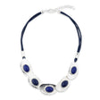 Textured Silvery Discs with Embodied Navy Beads Necklace YD22131BLU