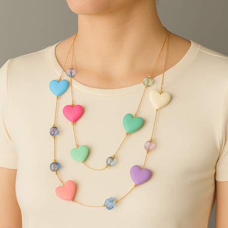 Bold Coral Faceted Bead Layered Necklace