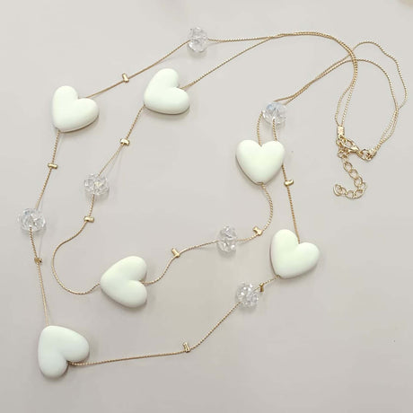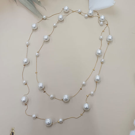 Elegant Long Pearl Station Necklace with Gold Chain