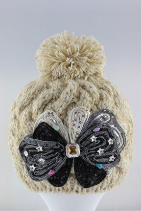 Large Bow Design Pom Pom Hat - Cream - Mix is backordered and will ship as soon as it is back in stock.