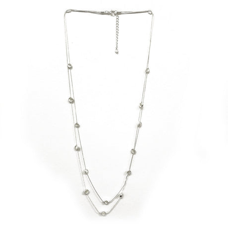 Sale price £1.50 Regular price £3.00Unit price /UnavailableDouble Strand Necklace with Round Gemstones - Silver-White (JM18071)