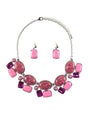 Multi-Stones Shape Necklace Set - Pink (YK1406056PK)