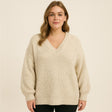 - This Chunky Knitting V-Neck Ladies Jumper is super soft and warm. It offers a fluffy texture, perfect for keeping you cozy during the winter. The oversize fit accommodates sizes 12-24 UK, ensuring a comfortable fit for all.