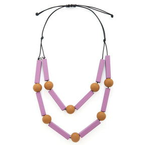 Pink Layered Assorted Wooden Beads Necklace YR39004MUS