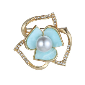 Blue and Gold Flower Brooch with Pearl and Diamantes YL22028BLU