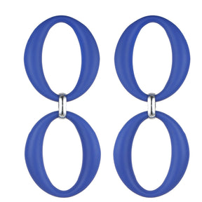 Blue Oval Double Hoop Earrings YD22804BLU - Blue is backordered and will ship as soon as it is back in stock.