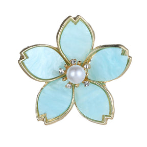 Blue Peach Blossom Brooch with Pearl Centre YL22026BLU - Blue is backordered and will ship as soon as it is back in stock.