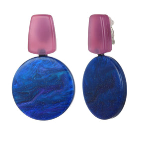 Circle Block Clip-On Earrings - Purple-Blue (YA39802PUR)