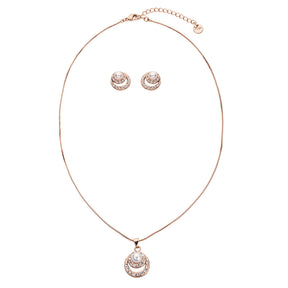Double Halo with Faux Pearl Center Piece Pendant Set - Rose Gold