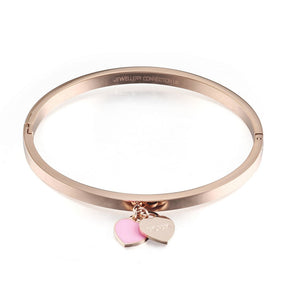 Double Heart Tag Charm Bangle - Rose Gold-Pink