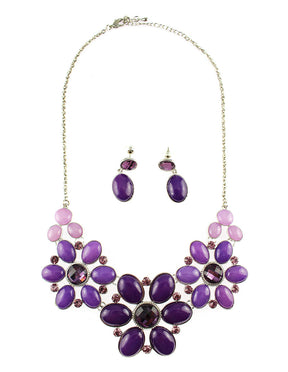 Floral Petal and Stone Necklace Set - Purple (YK1406010PP)