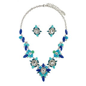 Floral Petal and Stones Necklace Set - Blue (YC14080016BL)