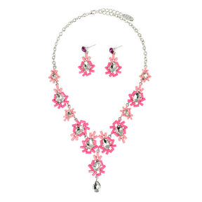 Floral Stones Necklace Set - Pink (YC14080018PK)