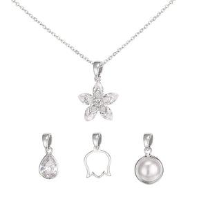Flower pendant charm comes with three interchangeable charms; Tear gem, open flower, pearl.