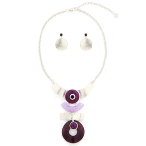 Geometric Purple and Silver Beads Necklace Set YK39020PUR