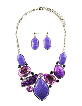 Glitter Stone Necklace Set - Purple (YK1409028PP) - Purple is backordered and will ship as soon as it is back in stock.