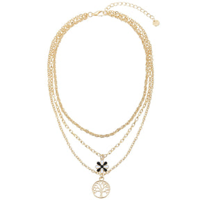 Gold Layered Necklace with Tree and Flower Pendants YT22007YGD - Gold is backordered and will ship as soon as it is back in stock.
