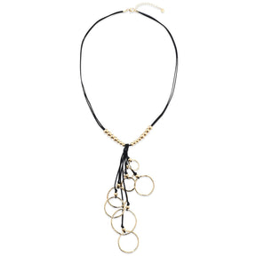 Gold Rope-style Long Necklace with Rings YT22010YGD
