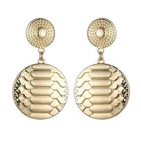 Gold Scale Textured Disc Dangly Earrings YD22831YGD