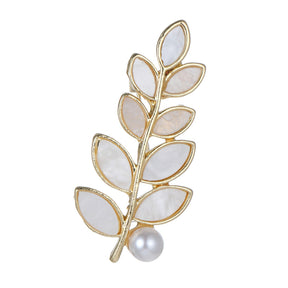 Gold Tree Leaves with a Drop of Pearl Brooch YL22029YGD