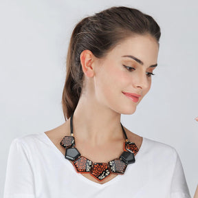 Hexagon Shapes Necklace - Orange (YA39065ORG) - Orange is backordered and will ship as soon as it is back in stock.