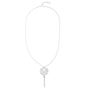 Hollow Designed Circle with Tassel End Necklace - Silver (YJ28047SLR) - Silver is backordered and will ship as soon as it is back in stock.