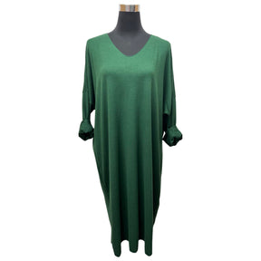 KNITTED MIDI DRESS LADISE BATWING COCOON SHAPE V-NECK FINE KNITTED TOP DRESS - Forest is backordered and will ship as soon as it is back in stock.