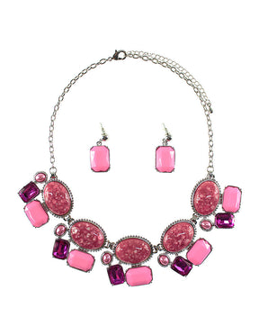 Multi-Stones Shape Necklace Set - Pink (YK1406056PK)