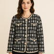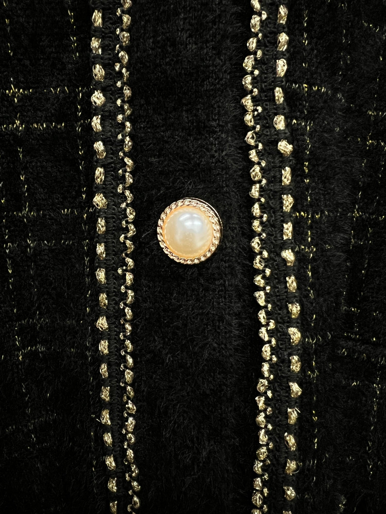 Parisian Vintage Tweed Cardigan With Pearl Buttons - UK SIZE 10-22 - VERSAILLES BLACK is backordered and will ship as soon as it is back in stock.