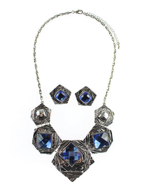 Pentagon Shield Shaped Necklace Set - Blue (YK1406011BL)