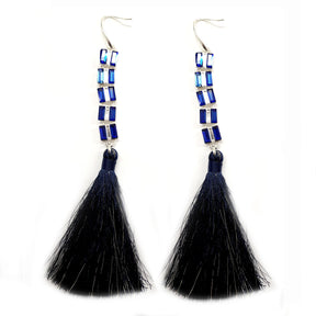 Rectangle Gem Tassel Dangle Earrings - Silver-Navy Blue (YD38E08SLR) - Silver is backordered and will ship as soon as it is back in stock.