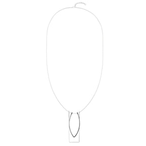Rectangle Oblong Geometric Long Necklace - Silver-Black (YZ28006BLK) - Black is backordered and will ship as soon as it is back in stock.