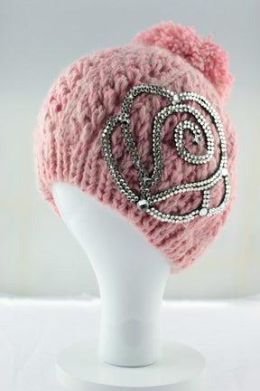 Rose Silhouette Diamante Pom Pom Hat - Pink