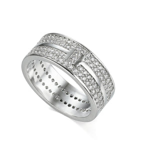 Silver Gold Plated Wide Band Ring with Diamantes YV21018SLR