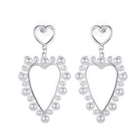 Silver Heart Earrings with Pear Beads YT22801SLR