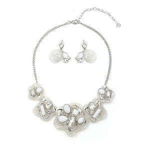 Splatter Gems Necklace Set - White (YK28016WHT)