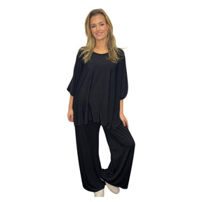 SPRING CO-ORD SET COCOON SHAPE TOP & HIGH WAIST WIDE LEG PANTS ONE SIZE FITS ALL UK SIZE 10-24 - Black is backordered and will ship as soon as it is back in stock.